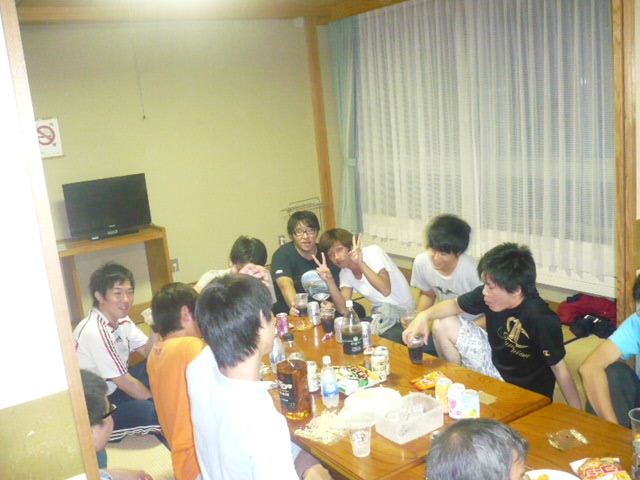 長かった合宿一日目も一段落し、部屋で飲み会