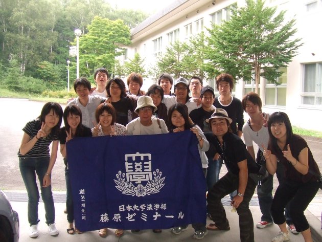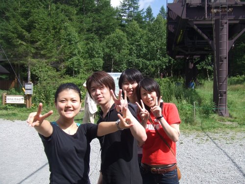 勉強の合間をぬって山登りへ。 途中からは徒歩で山道を登り、 勉強のし過ぎ(?)で、若干タガが外れたゼミ生多数。。 |