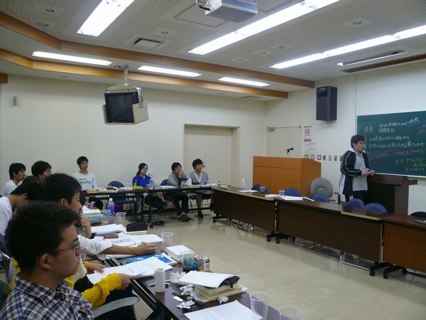 長旅疲れで眠そうな人もいますが、さっそく3年生の共同研究の発表から